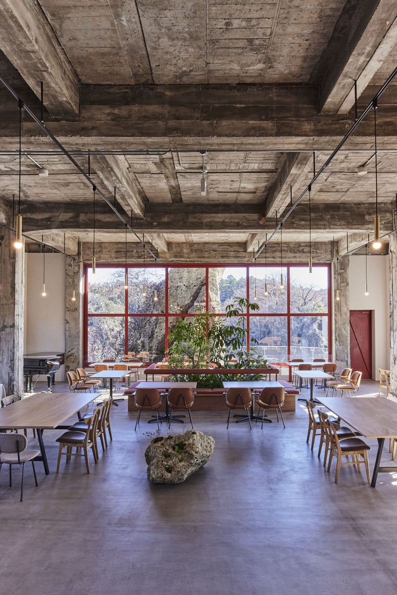 大谷グランドセンター(旧山本園)は、元オーナーの山本さんが、この場所を毎日眺めていた石工さんだったからこそ設計できた建物だ。我々も、山本さんのように、できるだけこの土地の魅力をそのままに、最小限の編集で何ができるか考えた。