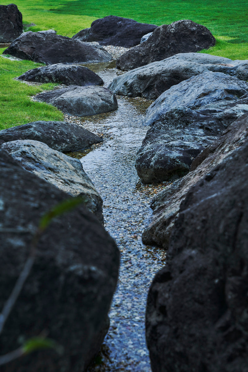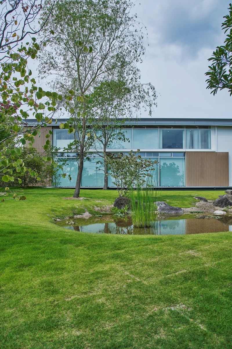 The resilience center is run by a company that works with soil. Just as good soil for a building isn’t always good for a garden, soil of a rice-field is different from that of a barnyard. For each area, such as lawn-garden, vegetable-garden, orchard, we carefully discussed the soil with the client. For the pond’s location, we created a clay layer to prevent water running off. One by one, we searched for suitable soil while preparing land.