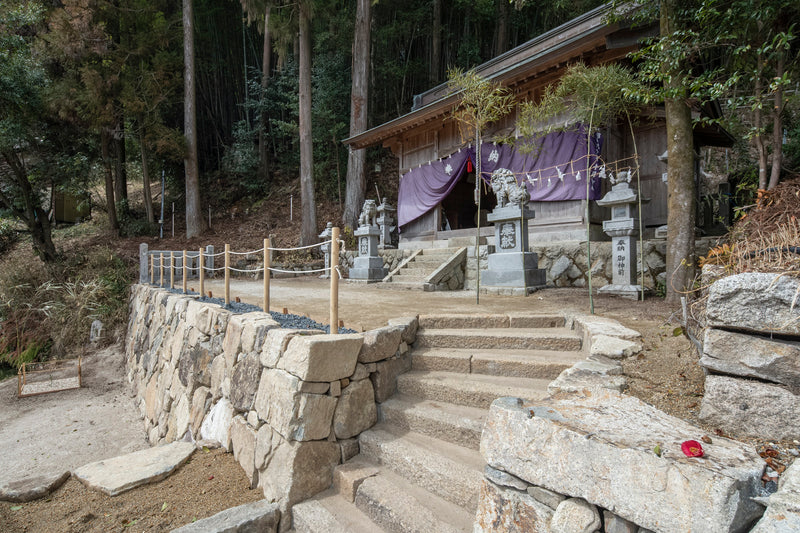 Bedore its fall, we say its towering figure touches the sky. The sight the Osugi clasped even the shrine’s stone wall was so overwhelming that its presence overshadowed the shrine, standing quiet at its back.