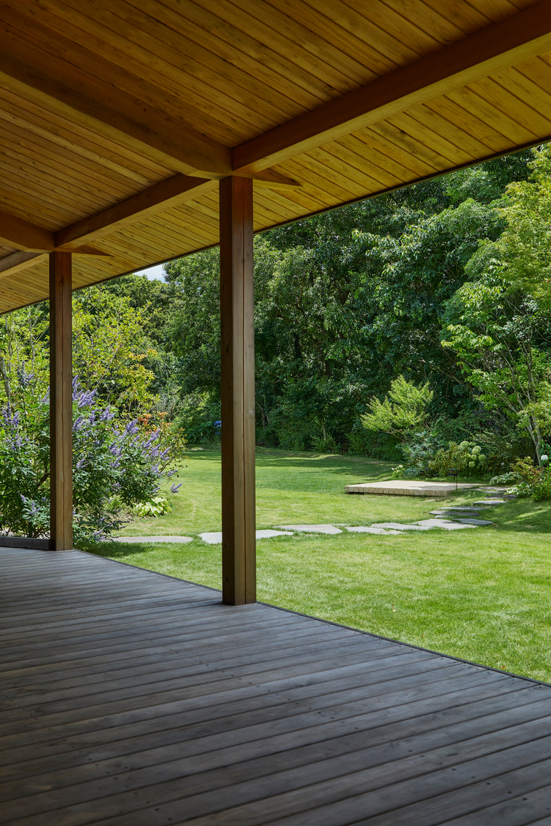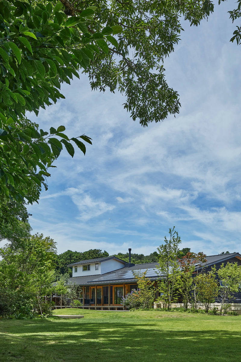 Additionally, they requested the space to be the local disaster prevention center. To accommodate many, a lawn space was created in the garden and a dry stone-terrace was build beside it.