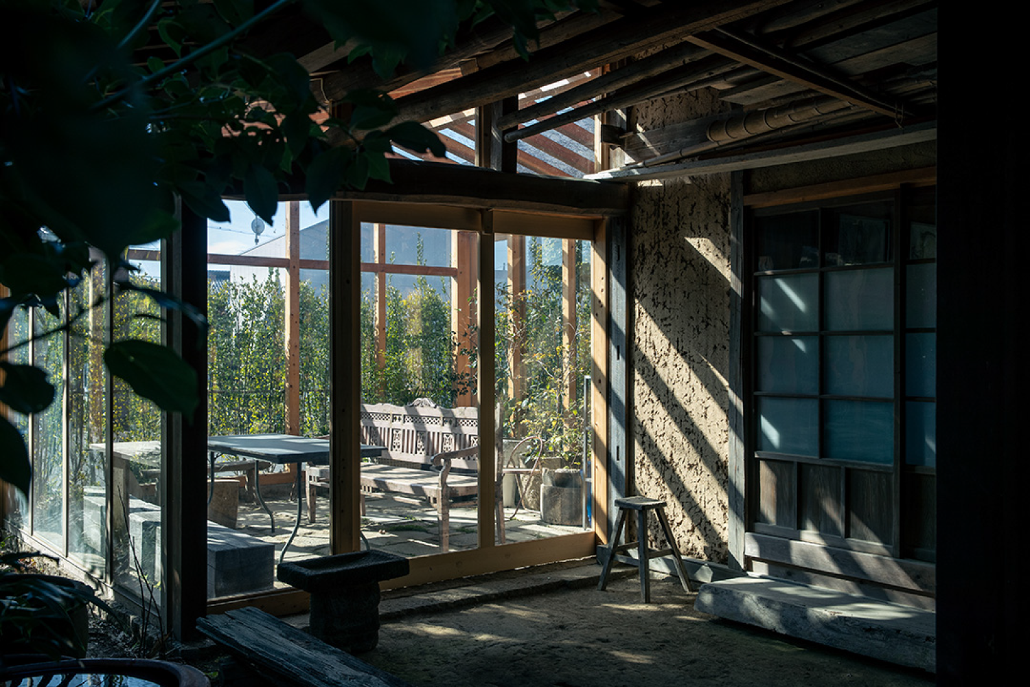 Withered and pruned branches are utilized as fuel for a woodstove. Bamboos from the grove are used for brooms and hedge materials, and also provide bamboo shoots in spring. Mowed grass and fallen leaves are composted to be decomposed, while rainwater is collected in a reservoir to nourish trees and vegetables.